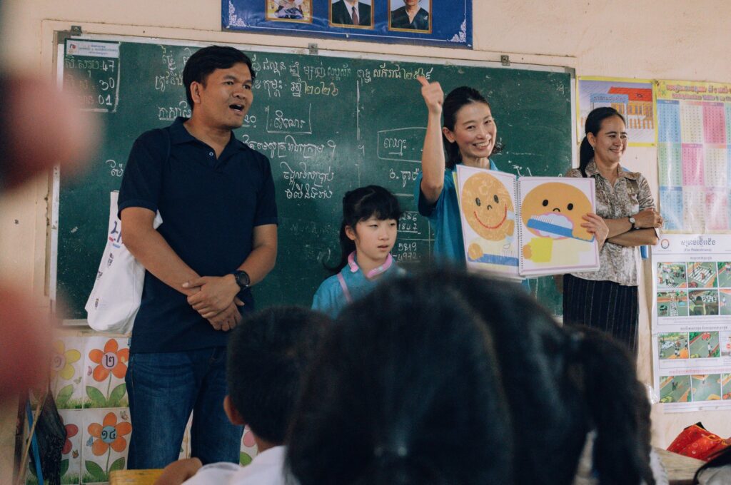 「今回、カンボジアの小学校で歯磨き指導のボランティア活動に参加させていただきました。日本では当たり前に行われている口腔衛生教育ですが、現地では歯ブラシを持つ習慣が十分に根付いていない子どもたちも多い様子で、改めて環境の違いを実感しました。」