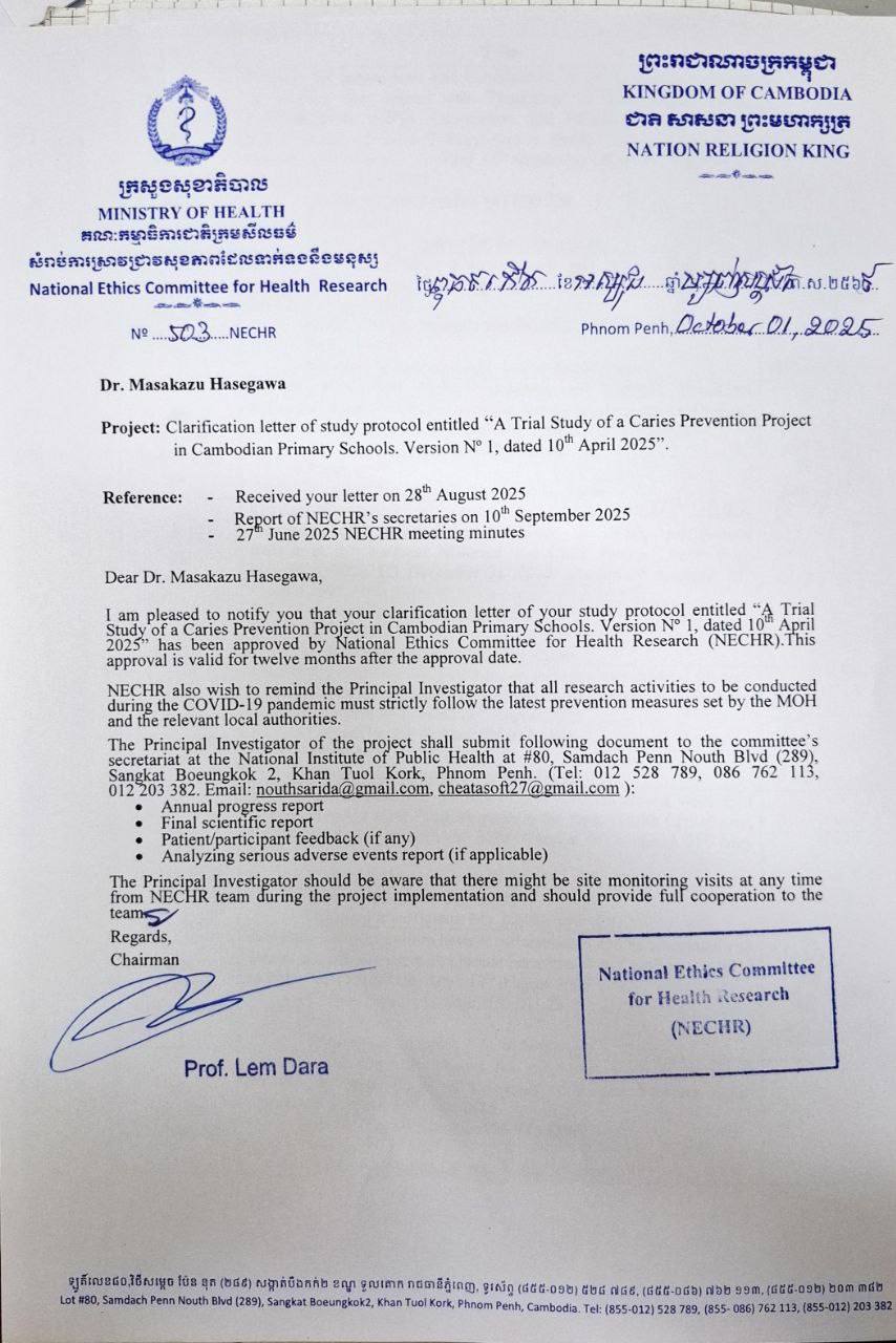 カンボジア政府倫理委員会へのプロジェクト申請完了のご報告